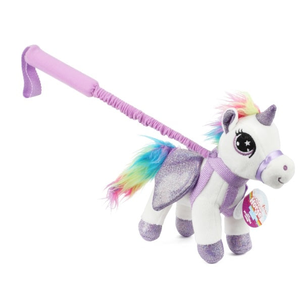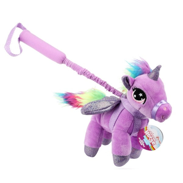 Galoppera iväg på magiska äventyr med denna gosiga enhörning på pinne! Den färgglada enhörningen har mjuk plyschpäls, regnbågsman och glittrande vingar – perfekt för små ryttare med stor fantasi. Låt barnen leka riddare, prinsessor eller sagohjältar och skapa lekfull rörelseglädje hemma eller utomhus.